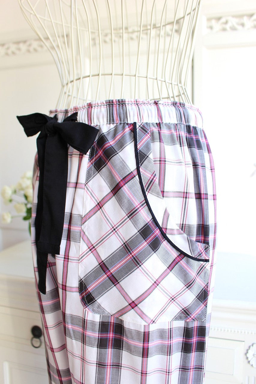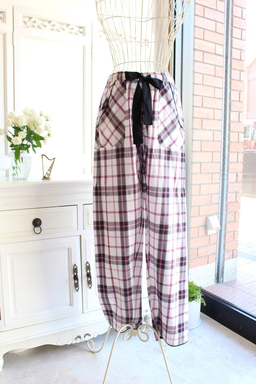 ブラックのボタン、パンツのリボンがポイントです。