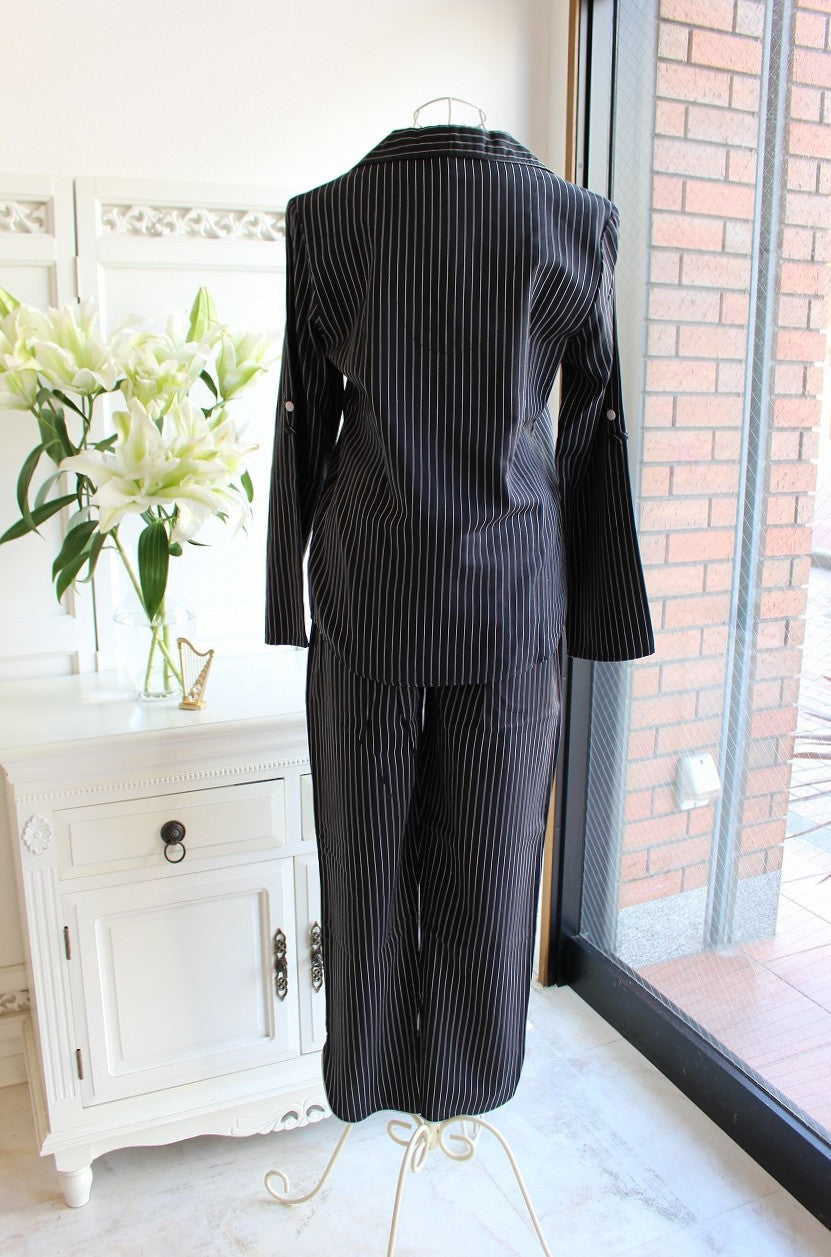 グレーのボタン、パンツのリボンがポイントです。