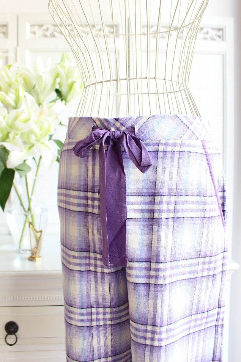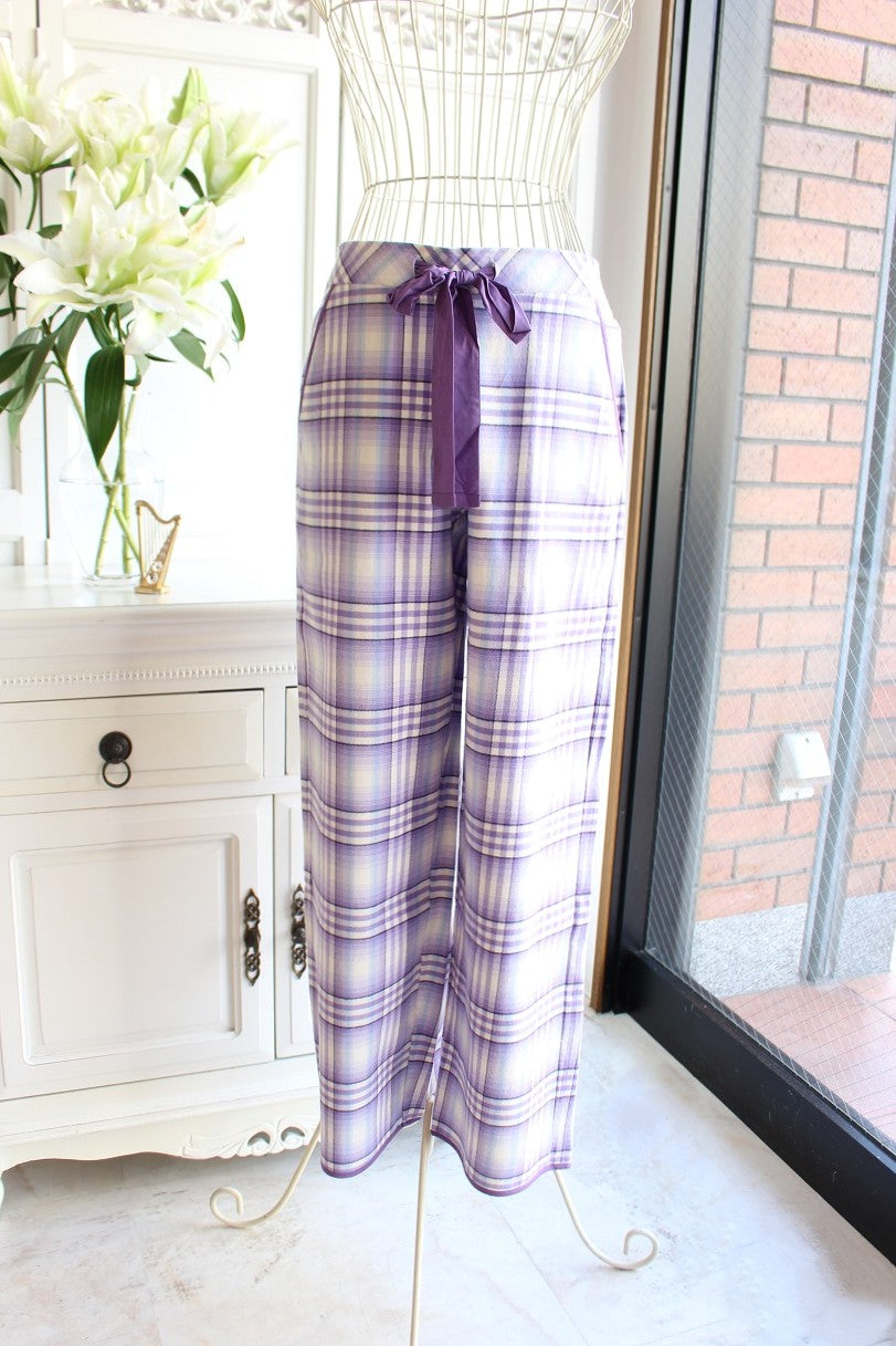ライラックカラーの優しいチェック柄