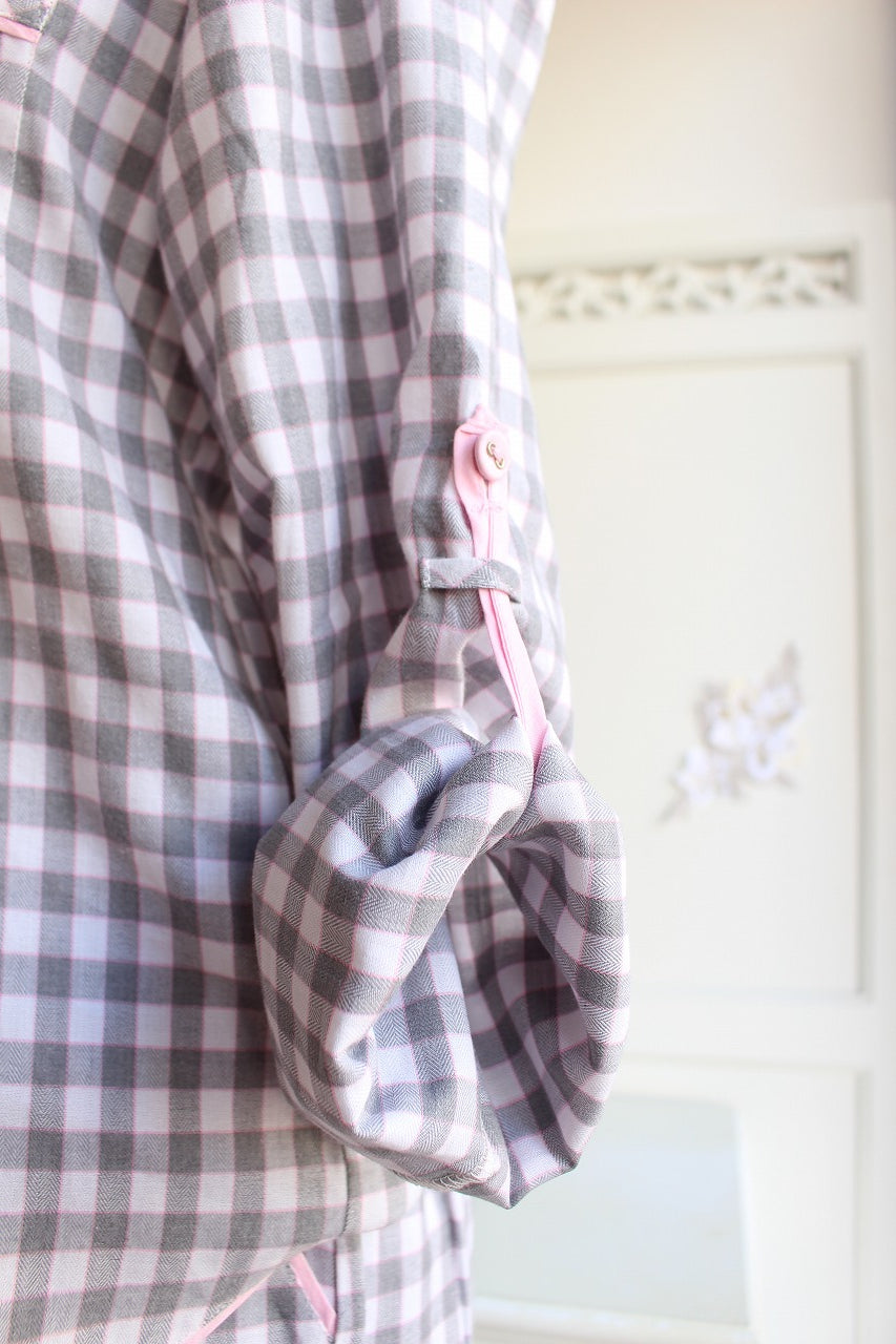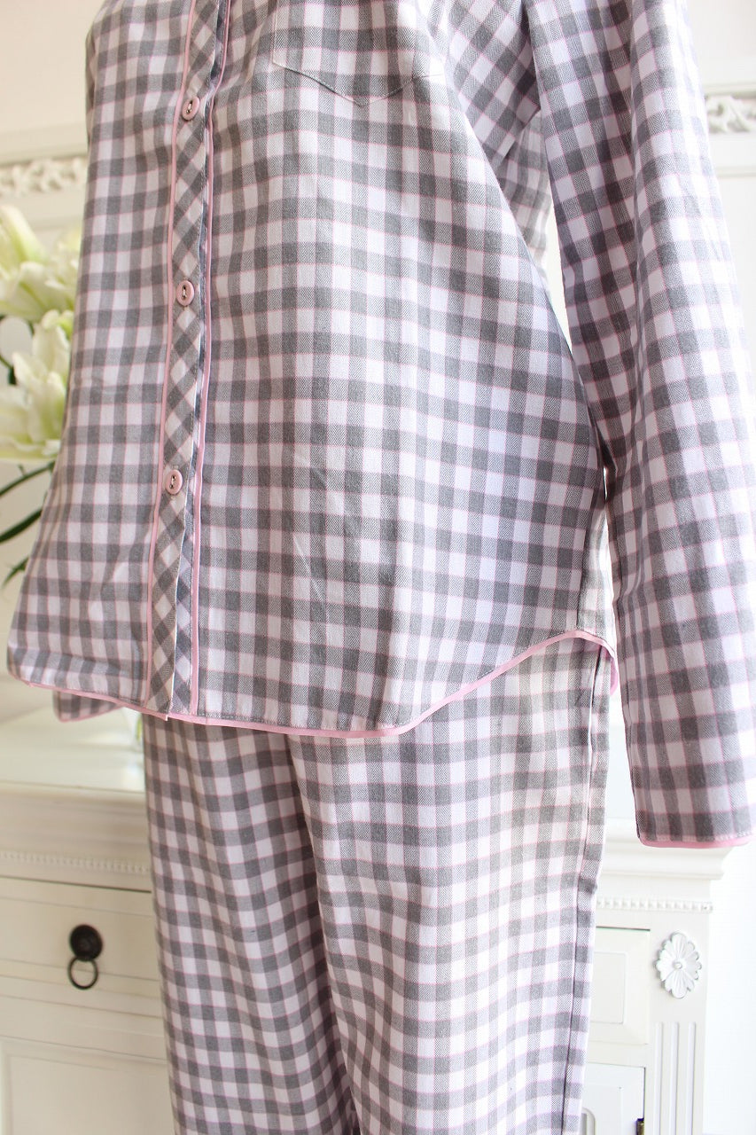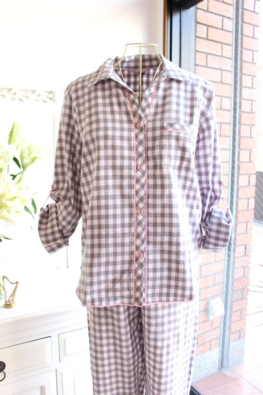 グレイ×ピンクの優しいチェック柄。